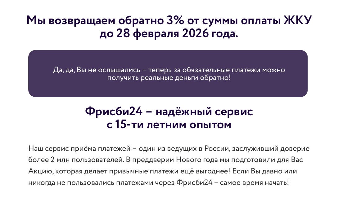 3% КЕШБЭК за ЖКУ при оплате через СБП в Фрисби24